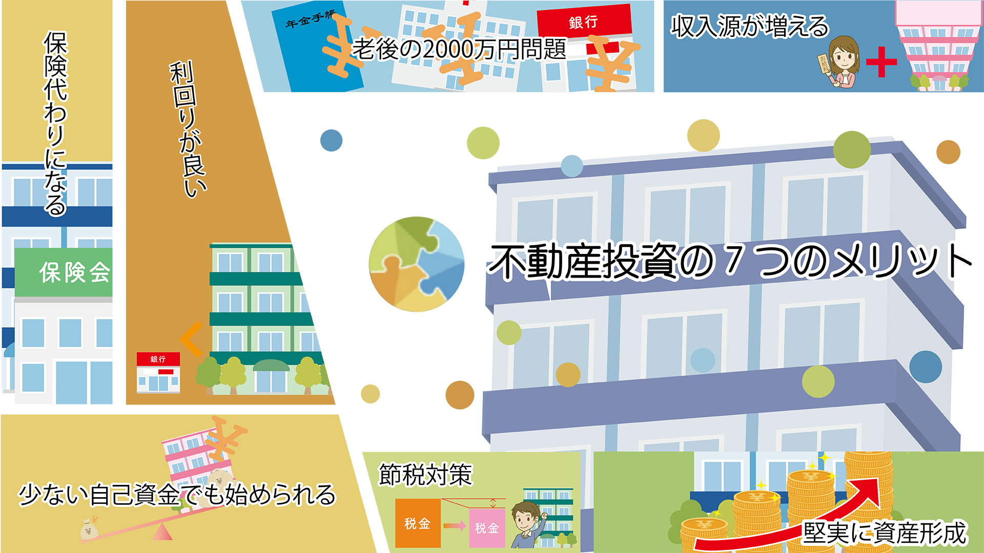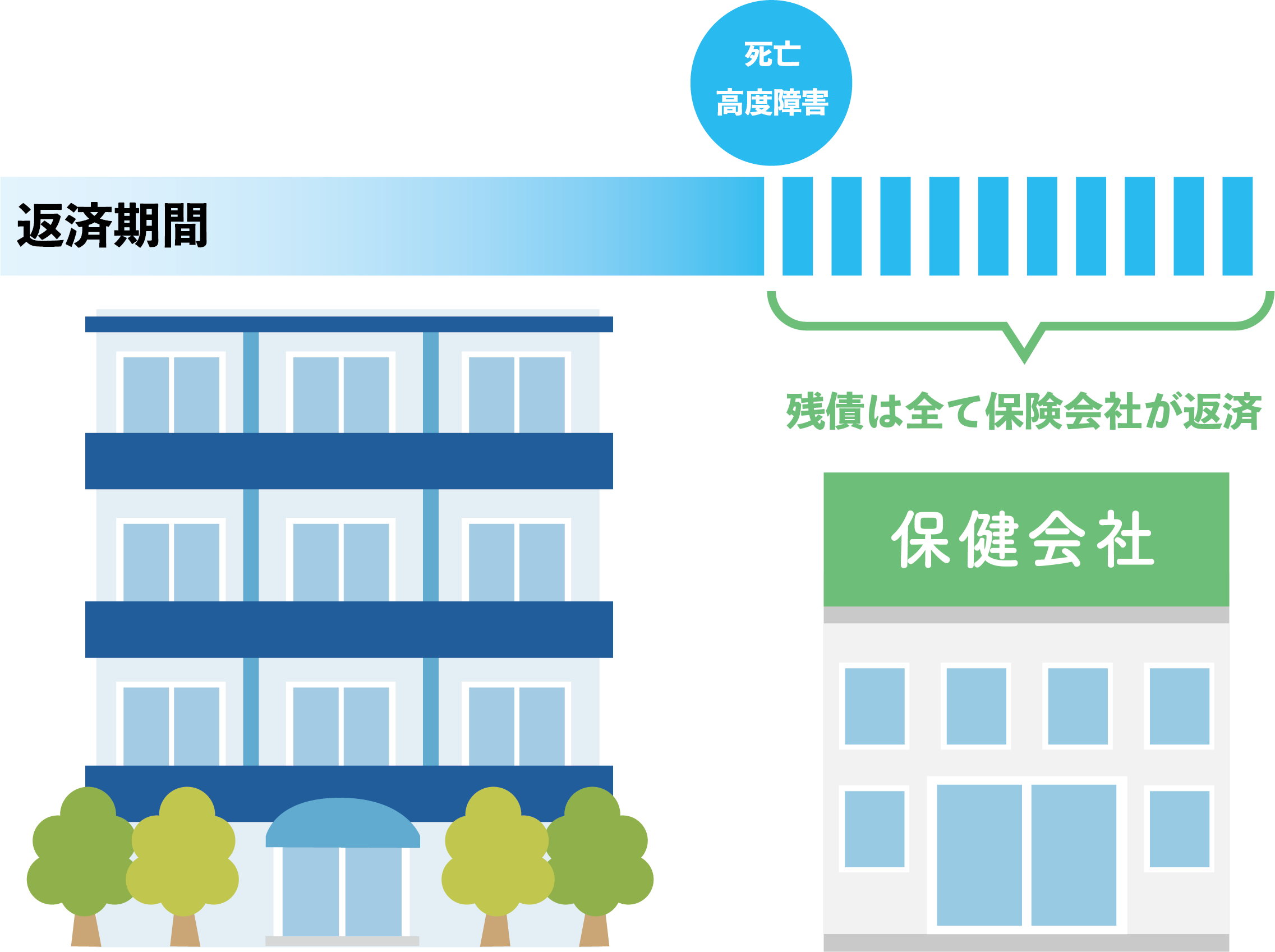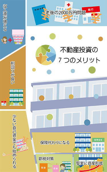 ローン契約者が死亡、もしくは、ガンなどの高度障害と診断確定された場合、残債は全て保険会社が負担します。また、生命保険よりも不動産投資の方が資産を多く作ることが可能です。- 06